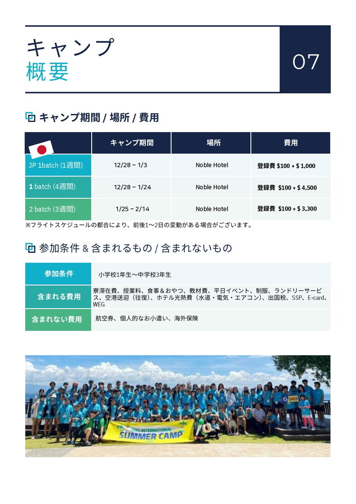 ☆日程日程①は日本人のみ参加の日本限定日程です。