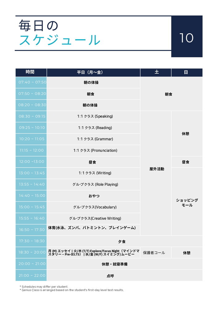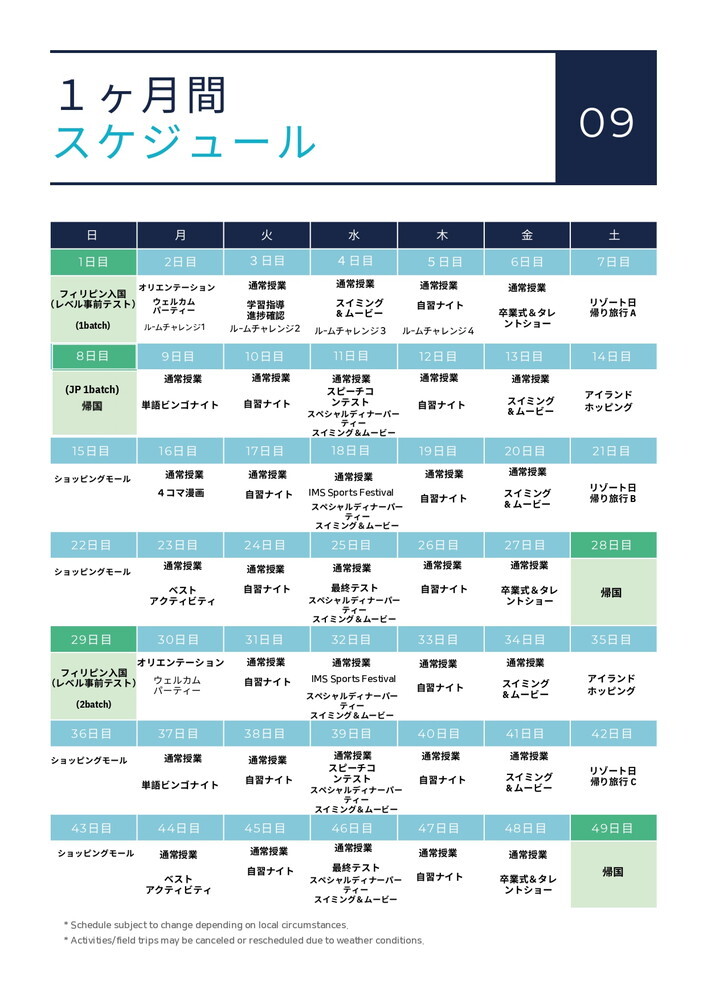 滞在寮費、授業料、食事&おやつ、教材費、平日イベント、制服、ランドリーサービス